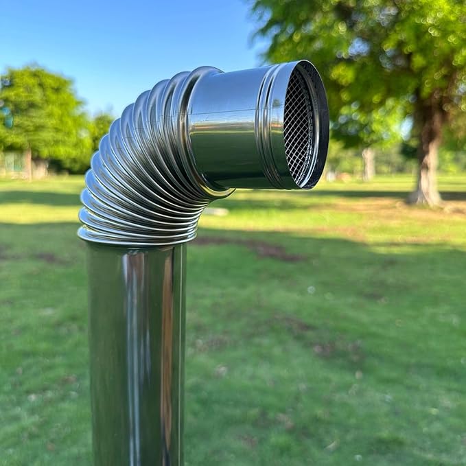 - The 90-degree elbow part can change the direction of smoke exhaust, which is suitable for outdoor camping in hot tents, indoor natural gas pipelines, ventilation during RV travel, etc.