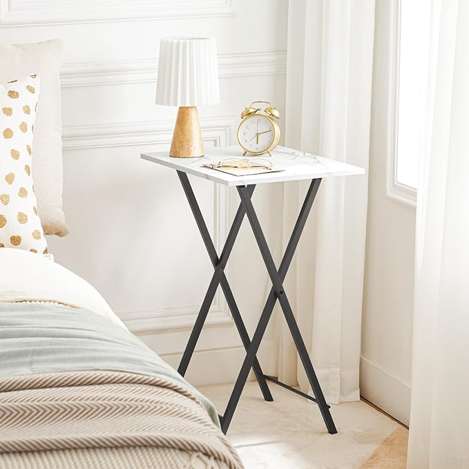 HOOBRO Folding TV Tray Tables, Set of 2 Stable Snack Table for Small Space, Portable Sofa Side Table, Easy Assembly and Storage, Ideal for Snacks and Meals in Living Room, Marble and Black BW25BZ01