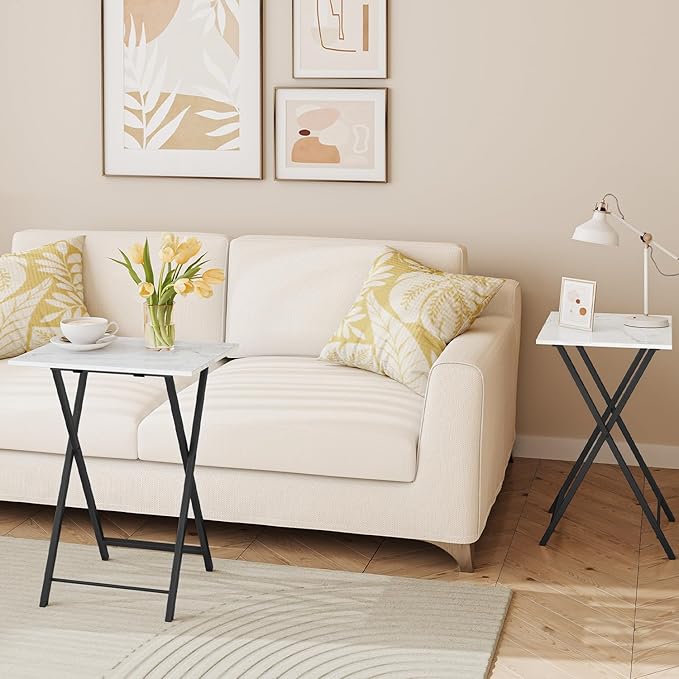 - Marble Design: Just look at the TV tray and you won't be able to take your eyes off its charming modern style. Maybe you already want to have a strong and durable metal frame TV folding table, then this TV tray table can fully meet your needs