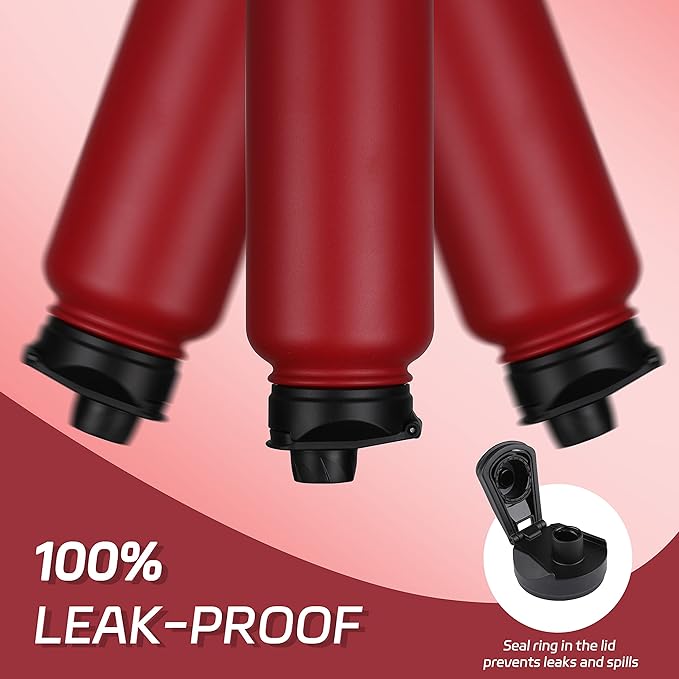 HASLE OUTFITTERS 40oz Stainless Steel Water Bottle, Vacuum Insulated Double Walled Leak Proof Sports Water Bottle with 2 Lids (Straw and Spout Lid) Thermo Mug Keep Cold and Hot(Red,4)