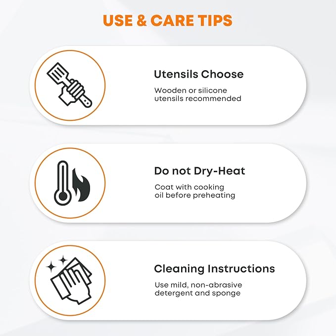 - Nonstick Cooking Surface: Ceramic coating cooking surface provides superior nonstick performance and corrosion resistance, even heating, and effortless cleaning. Clean with a soft sponge or damp cloth. Never use sharp items such as steel wool on it.
