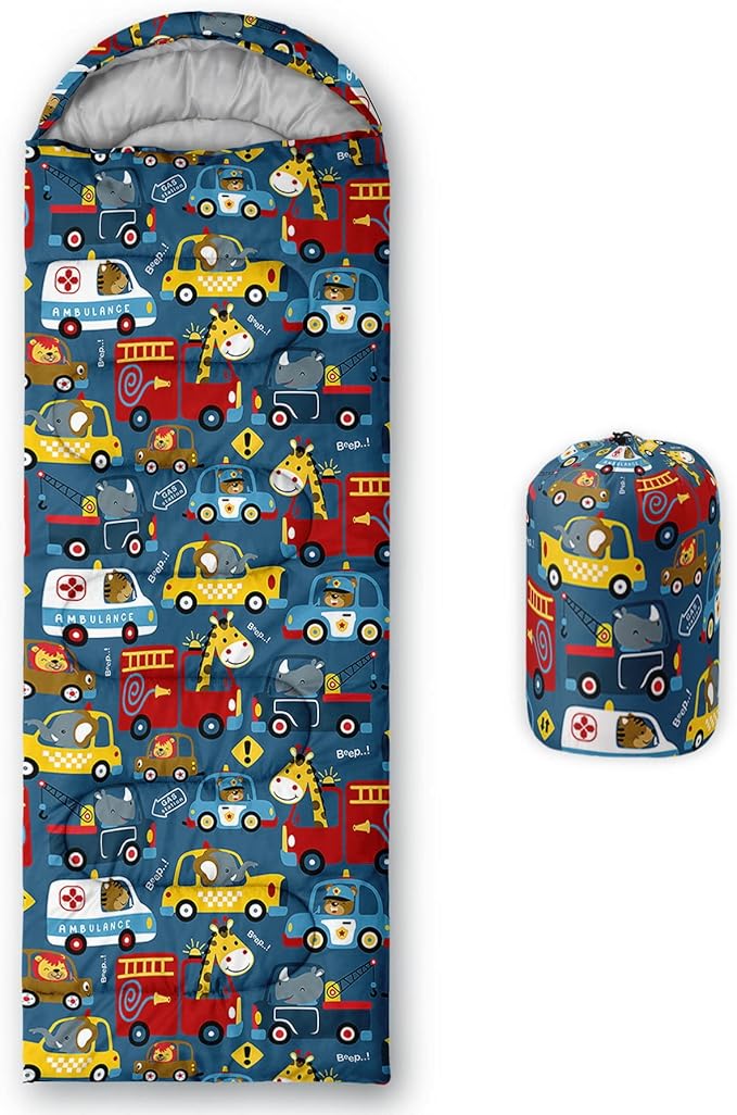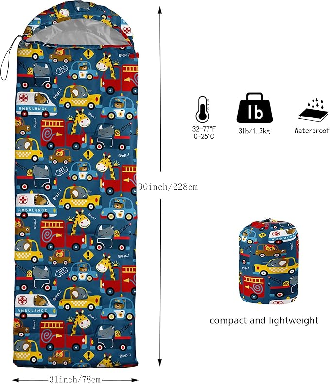 - SUITABLE:The sleeping bag can be used for 3 Seasons.SIZE:90.5"L x 31.5"W Suggenal extreme temperature: 41 ℉ -77 ℉.Applicable in a variety of scenarios,such as Travel camping pajamas party,It's very suitable for you to travel with your children.Half-circle hood with adjustable drawstring,which can keep you warm and prevent your humidity