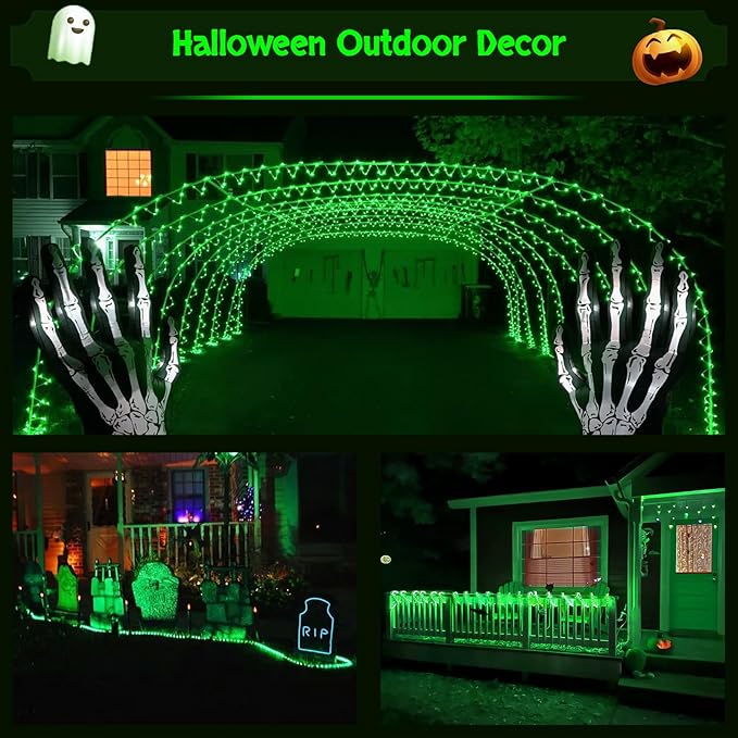 - [IP65 WATERPROOF &PVC HOSE PROTECTION] What's more surprising is that the 200LED low-voltage solar rope fairy lights have passed IP65, it is not only waterproof but also frost-proof and sun-proof. It is more durable than other ordinary solar string lights, it can meet your different indoor and outdoor decor throughout the year. Decorating Halloween with green rope lights can make your home in the holiday spirit.