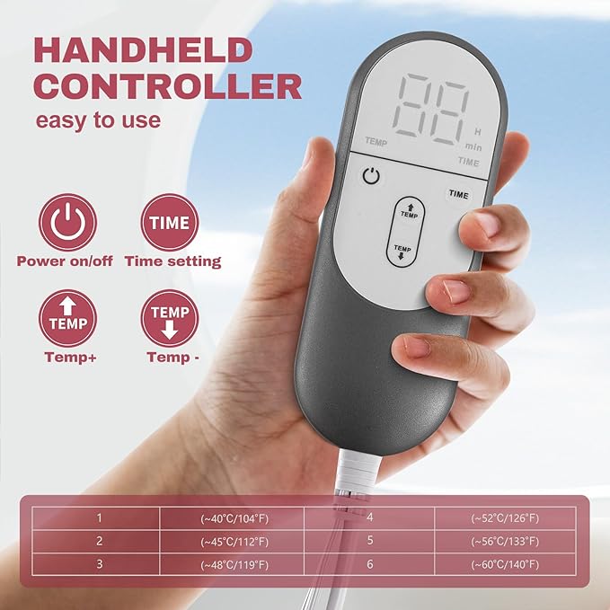 - Relief Pain & Relax Muscles: 20'' x 24'' extra large heating pad for back, abdomen, neck, shoulder pain relief. You can choose between 1-6 level temperature modes, 1- 4 timer levels, and pick the one that best relieves you of stress and pain. You can choose a dry or moist heat pad according to your needs, just spray a fine mist on the heating pad surface. heating pad includes a 107 inch extra-long power cord, so you can easily use it wherever there is an outlet