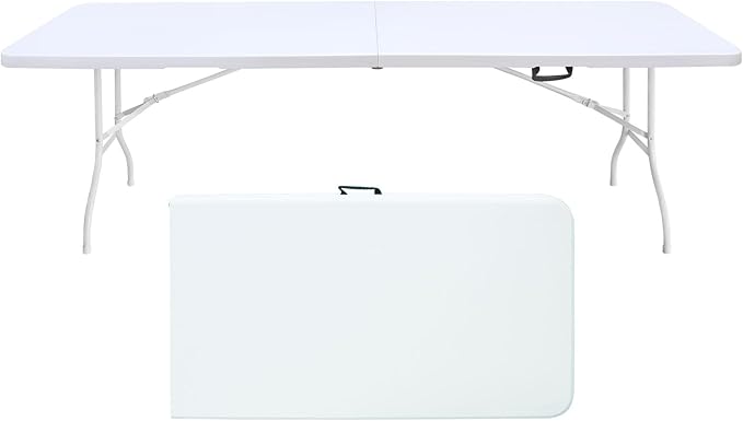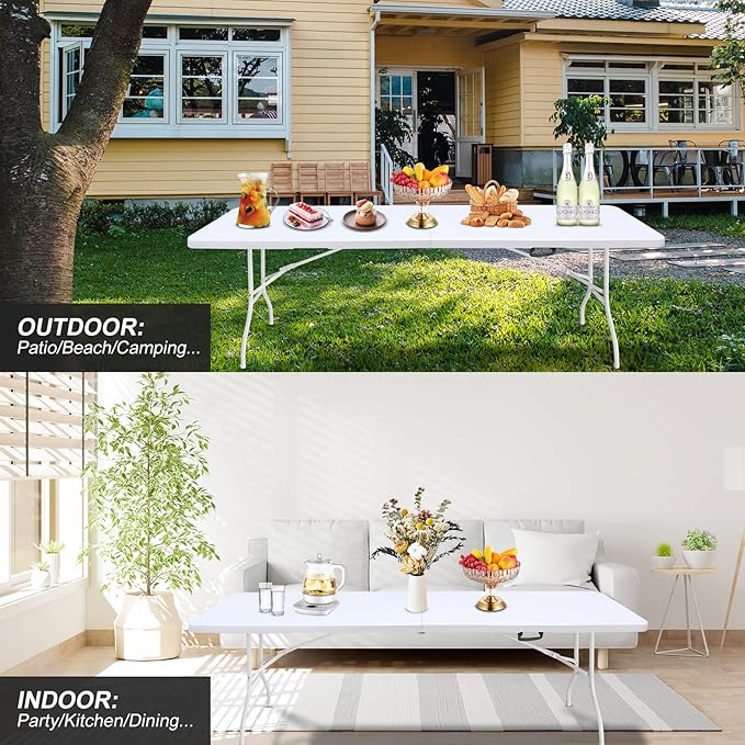 Portable Plastic Folding Table 4ft/6ft/8ft Heavy Duty White Black Picnic Dining Table Fold-in-Half for Camp Party Kitchen Indoor Outdoor