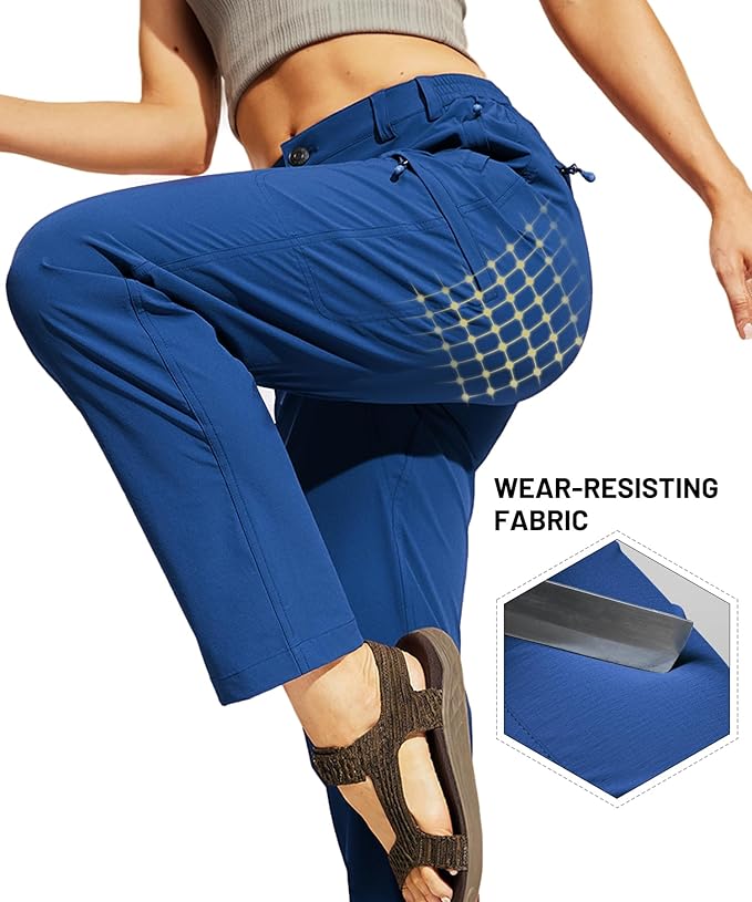 - These functional outdoor pants for women are designed especially for hiking, backpacking and mountain adventures. Crafted with the lightweight, quick dry, water-resistant, 4-way stretchy ripstop Nylon delivers breathable comfort and a full range of motion. Patent pending Miflex fabric developed by MIER, wicks moisture and dries quickly to keep you cool and fresh on the trail. Great for Spring/Summer/Autumn