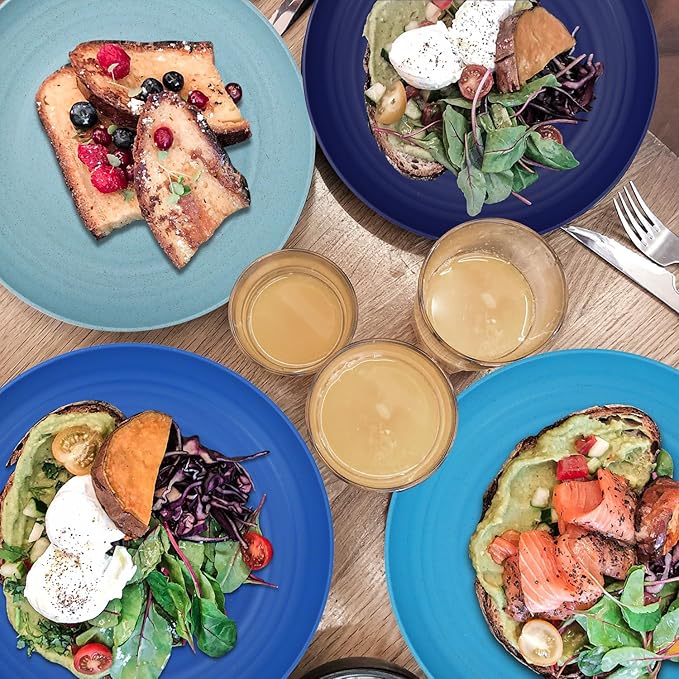Wheat Straw Plates - 8 Inch Unbreakable Dinner Plates Set of 8 - Dishwasher & Microwave Safe Plastic Plates Reusable - Lightweight Kids Plates for kitchen,R.V. (Ocean)