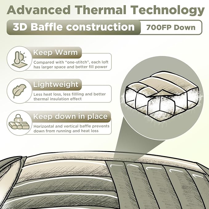 - 23 Degree Fahrenheit (-5℃): Stay warm even in cold temperatures with 2KG high-quality white duck down. The down fill provides exceptional insulation, keeping you cozy and comfortable during cold weather camping trips