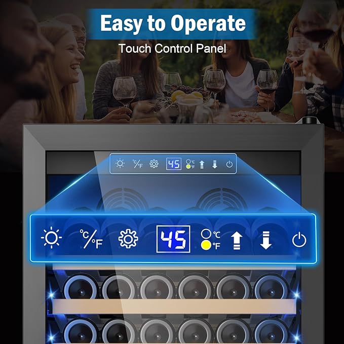- Temperature Control with Touch Panel and Memory Function: Our wine fridge is equipped with a user-friendly touch control panel that allows you to easily adjust the temperature within a range of 40-65 ° F. Plus, it features a memory function to retain your preferred settings