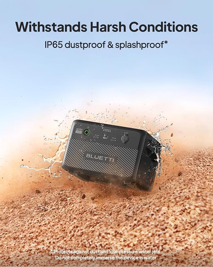 - [IP65 Dust & Splash Protection] - An ideal outdoor battery for adventures. Whether you're camping in the rain or spending a day at the beach, the B210 keeps you powered up.