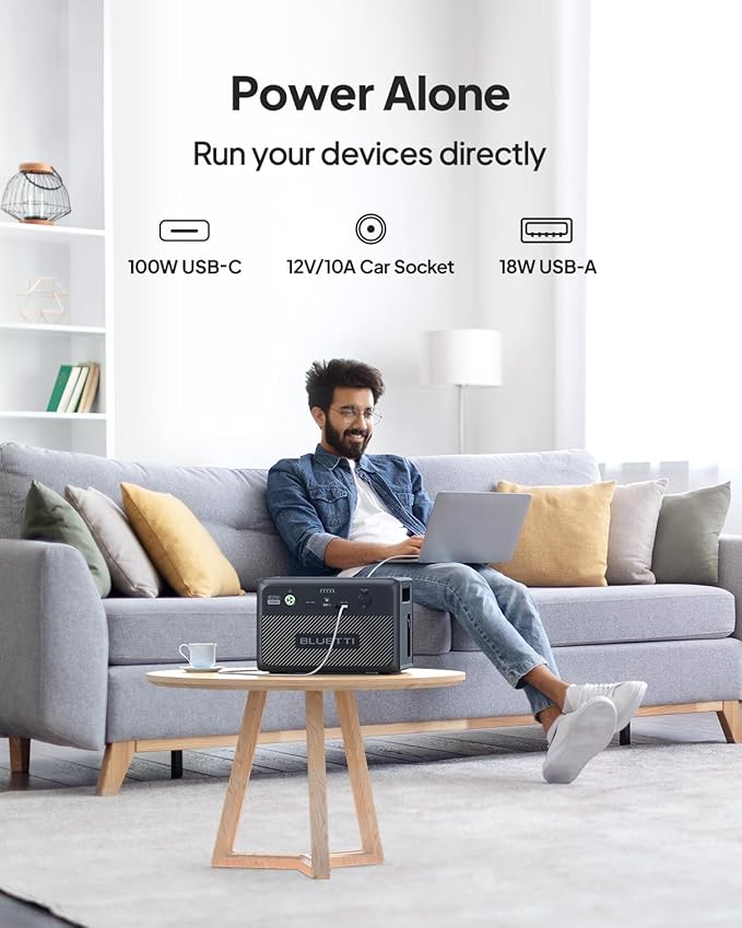 - [Self-powered Alone] - The B210 is also a power station with 1 × 100W USB-C, 1 × 18W USB-A and 1 × 12V/10A car socket. It can charge your smartphone, tablet, and more for hours.