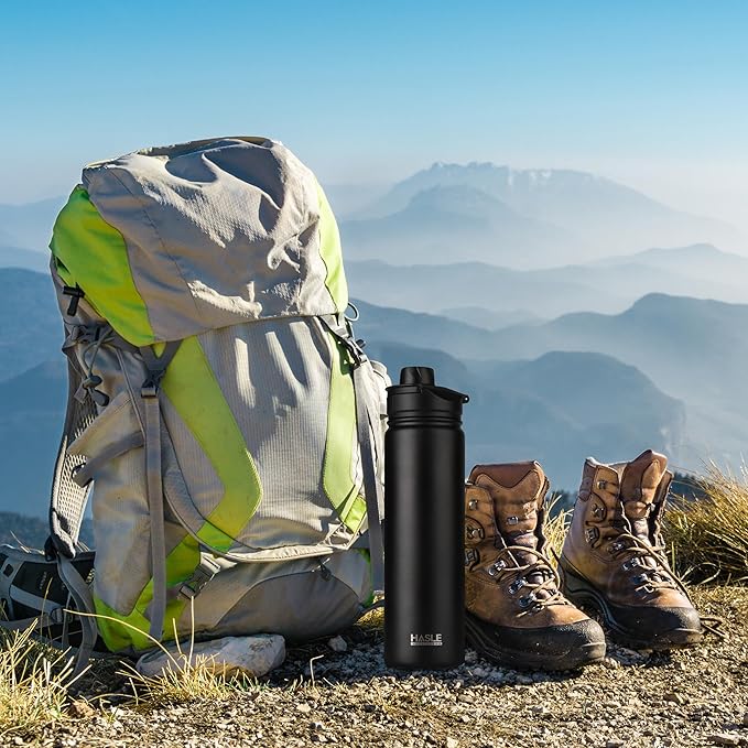HASLE OUTFITTERS Insulated Water Bottle 22 oz Double Wall Stainless Steel Water Bottle Wide Mouth with Straw Lid & Spout Lid Keeps Cold or Hot(Black,1)