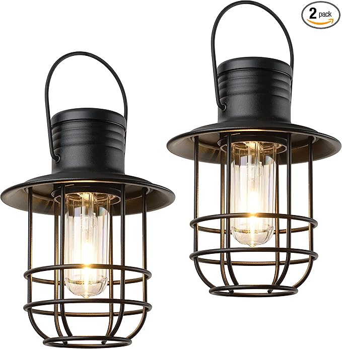 - 8-inch metal standing and hanging lantern with a vintage-inspired filament style LED light source.