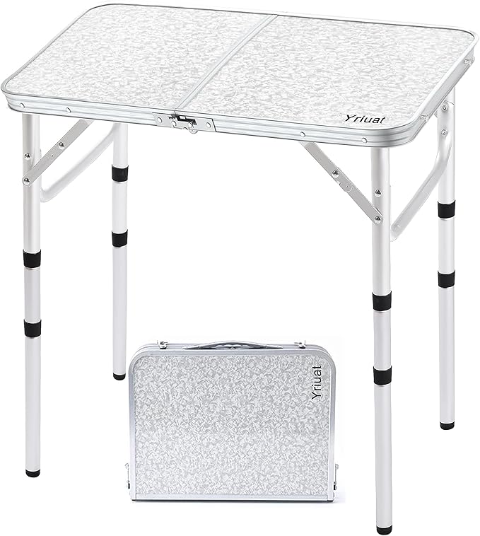 Folding Camping Table 2ft Portable Pinic Table Adjustable Height Small Card Table Aluminum Foldable Lightweight with Carry Handle for Outdoor Indoor Hiking Camp BBQ Beach