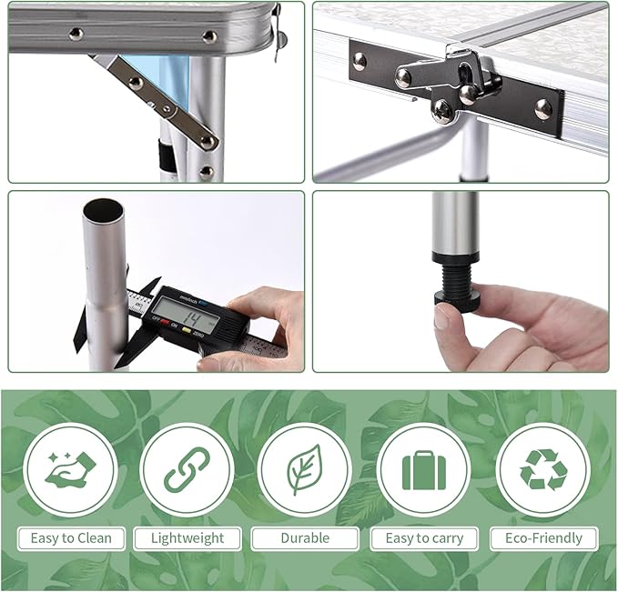 - Sturdy and Stable:Our sturdy camping table comes with a robust 5 mm MDF tabletop, thick aluminum alloy frame, U-shaped side supports, and secure locks, it guarantees durability and stability. Designed to withstand the demands of any outdoor activity