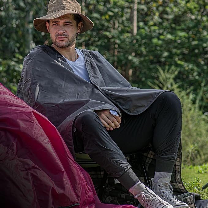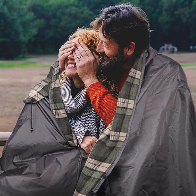 - β ππ«π§π₯π πππ₯ππ& π¨ππ§π₯π-πππππ§οΌThis large outdoor camping blanket measures 79 x 59 inches (equivalent to a Queen Size Mattress) is large enough to wrap up to 2 adult. The large waterproof outdoor blanket is specially designed with a hook&loop fastener, so that you can wear it on your body to free your hands.