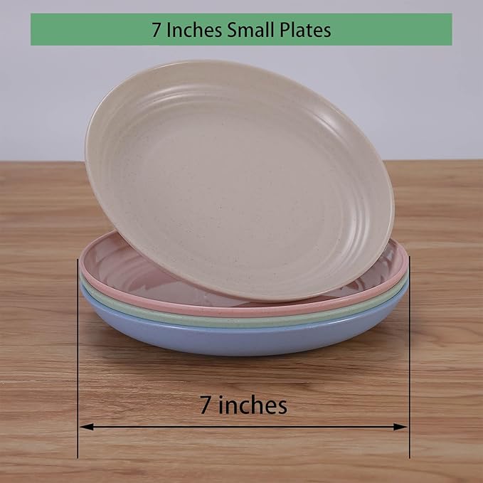 LuckyZone 7 Inches Small Unbreakable Wheat Straw Plates - Reusable Plate Sets of 4 - Dishwasher & Microwave Safe - Perfect for Dinner Dishes - Healthy, BPA Free & Eco-Friendly (7 Inches)