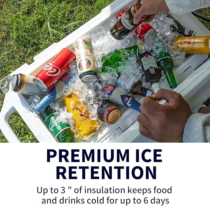 - ICE RETENTION: Polyurethane insulation core and silicone gaskets create a thermal fortress, maintaining sub-zero temps for 100+ hours cooling in full-ice mode. Triple-layer walls and vacuum-sealed closure combat heat transfer, keeping contents frosty through desert trips and beach weekends alike, achieving 75+ hours using 2:1 ice-to-contents ratio (ideal for 4-day journey).