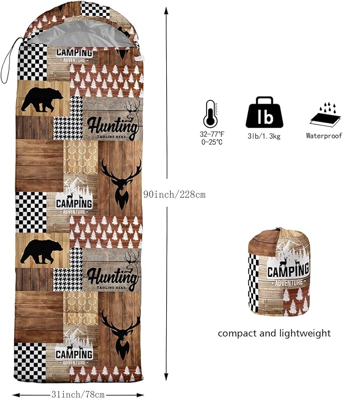 - ๐ใFashion DesignใSIZE - 31 by 90 inches (W x D). Our sleeping bag can be used in 3 seasons with a design temperature of 32โ-77โ(0โ-25โ). These bags also have a weather resistant waterproof design to keep you warm and prevent you from any dampness.