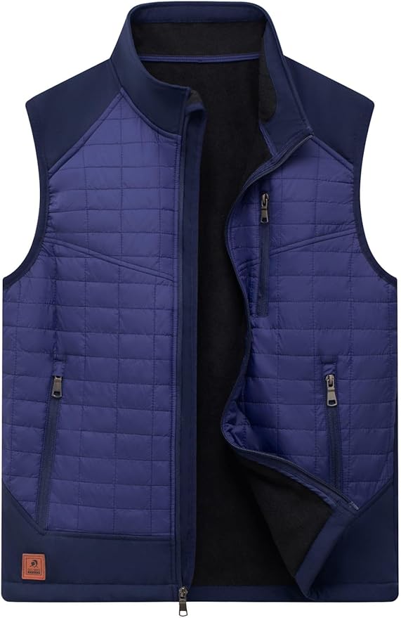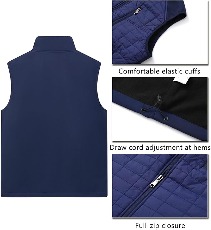 Vcansion Men's Lightweight Fleece Lined Puffer Vest Softshell Outerwear Sleeveless Jacket for Hiking Travel Golf