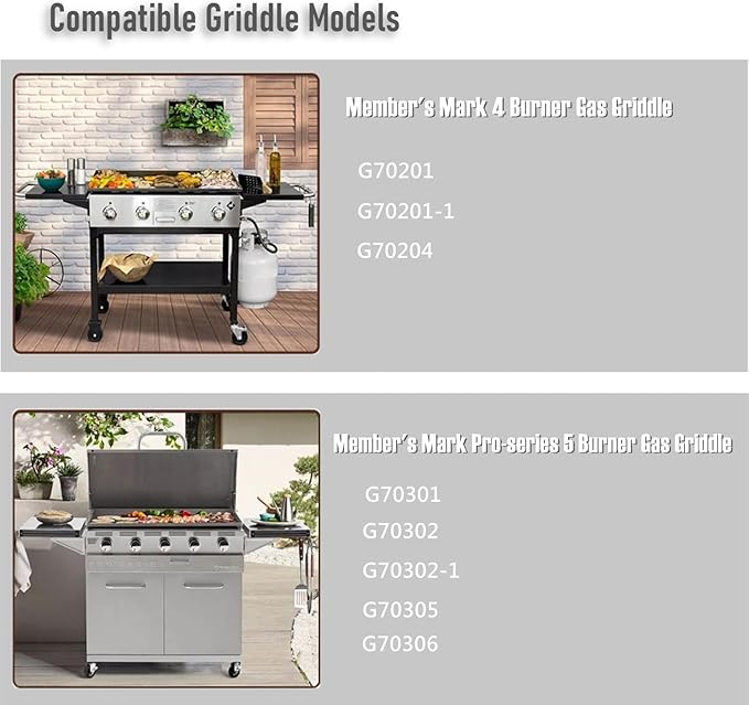 - Identical with Original Drip Pan Liner- Compatible with Member's Mark 4-burner gas griddle:G70201, G70201-1, G70204. Pro-Series 5 burner griddle: G70301, G70302, G70302-1, G70305,G70306