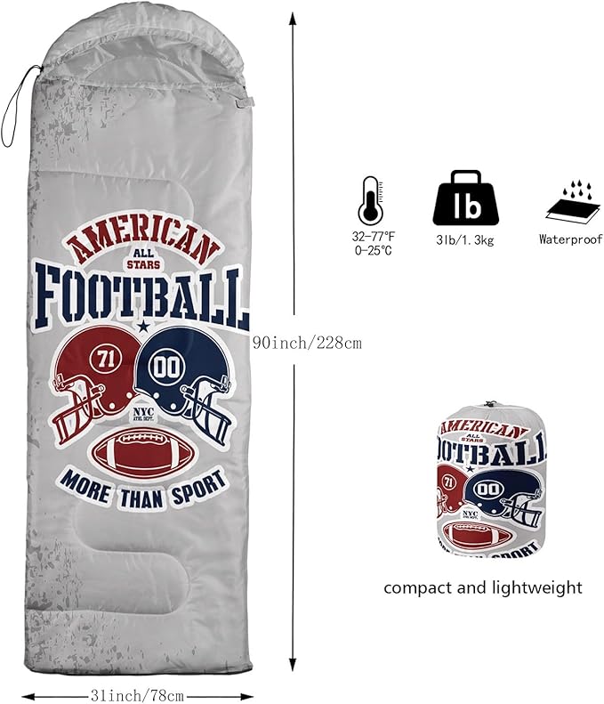 - SUITABLE:The sleeping bag can be used for 3 Seasons.SIZE:90.5"L x 31.5"W Suggenal extreme temperature: 41 ℉ -77 ℉.Applicable in a variety of scenarios,such as Travel camping pajamas party,It's very suitable for you to travel with your children.Half-circle hood with adjustable drawstring,which can keep you warm and prevent your humidity