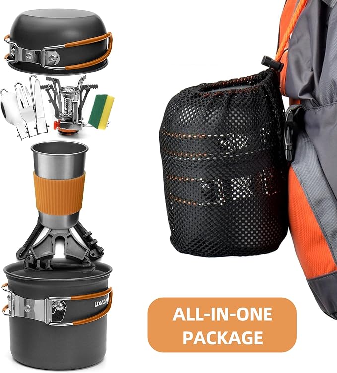 Lixada Camping Cookware Set Portable Camping Mess Kit Cooking Set Camping Cooking Set Outdoor with Stove Spoon Fork Cutter for Picnic Hiking Backpacking Travel