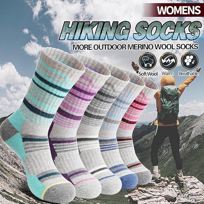 - Package and Size:Here are 5 pairs merino wool hiking socks for women. And here are 2 sizes as options, M (suitable for US women's shoe size 5.5-10) & L (suitable for US women's shoe size 10-13).The value package with fashion colors are most women’s favorite.