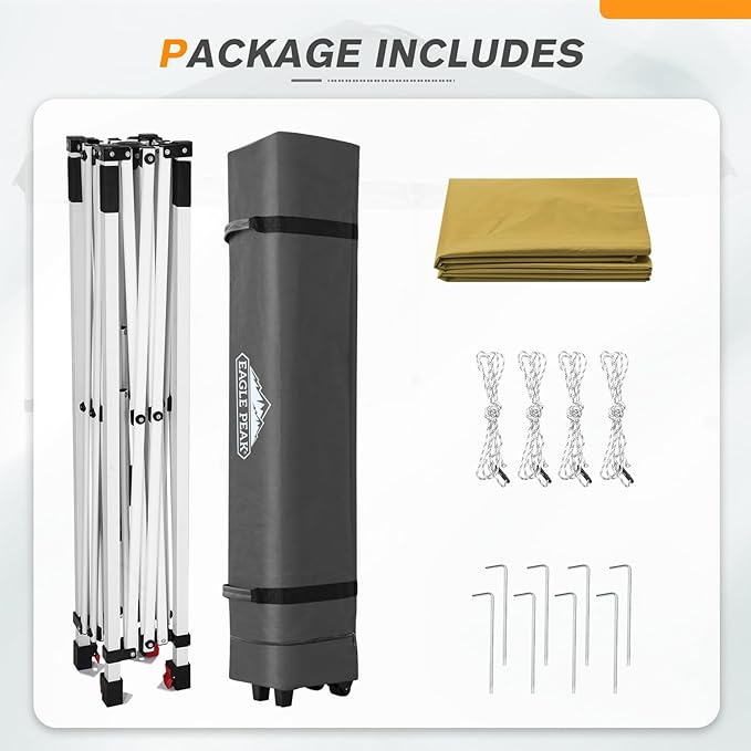 - EAGLE PEAK PROMISE: EAGLE PEAK offers 1-year limited after sale protection from the date of purchase. Unlike many other canopy sellers, EAGLE PEAK offers this for our frames, tops and bags! Please contact our professional service team with any questions