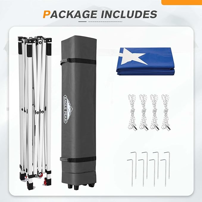 - EAGLE PEAK PROMISE: EAGLE PEAK offers 1-year limited after sale protection from the date of purchase. Unlike many other canopy sellers, EAGLE PEAK offers this for our frames, tops and bags! Please contact our professional service team with any questions