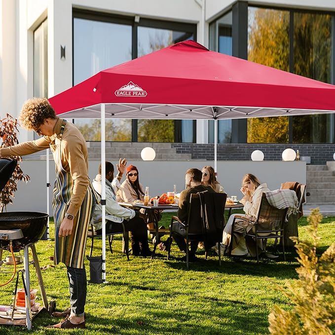EAGLE PEAK Pop Up Canopy Tent with Wheeled Carry Bag, 8 Stakes, 4 Ropes, 4 Weight Bags, Easy Set Up Tent Canopy, 12x12 ft, 144sqft of Shade, Red