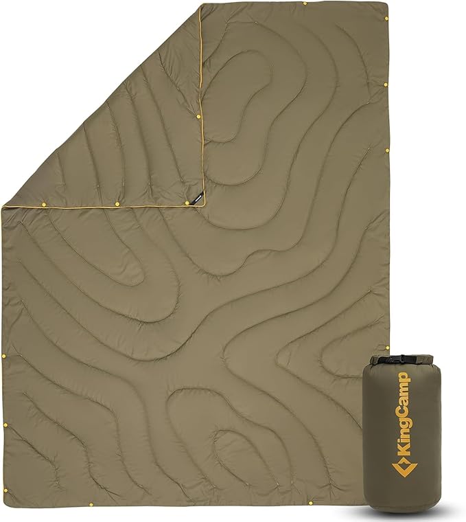 KingCamp Ultralight Camping Blanket, Packable Down Alternative Puffy Wearable Blankets Weatherproof Warm Package Quilt with Snap Buttons & Corner Loops for Outdoor Travel Stadium (69"L x 53"W, GREEN)