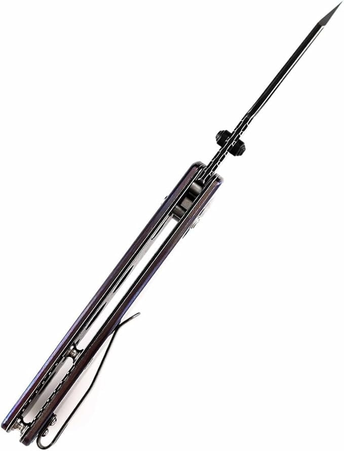 - Lightweight And Flexible Handle - The Timascus handle with its specially finished surface is ergonomic and can be used even with sweaty palms and the large steel clip makes it easy to secure the knife. Compact and versatile, this folding knife fits in your pocket and is perfect for camping, hunting and outdoor adventures