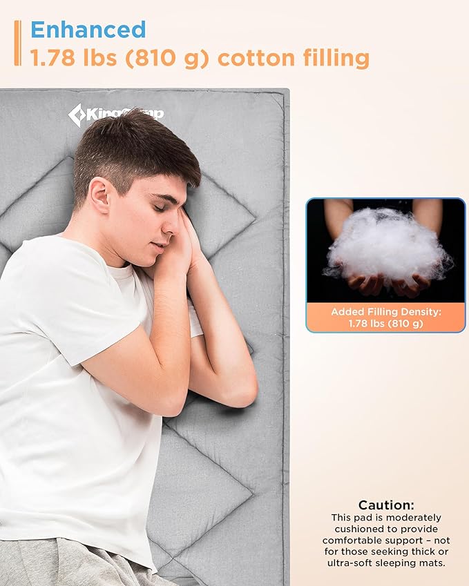 KingCamp Cot Mattress, Portable Lightweight Camping Sleeping Mat Soft Comfortable Non-Slip Cot Pad for Camp Cot, RV Bunk & Twin Beds