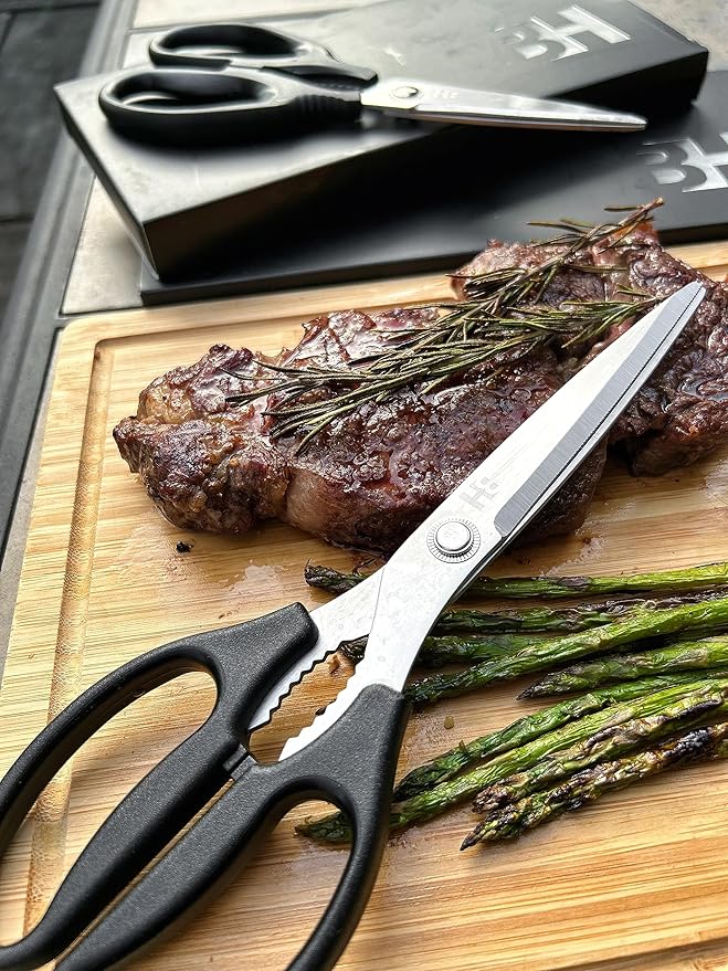 - TRANSFORM YOUR KITCHEN GAME - Enhance your culinary skills with BH Bowery Home 8-inch Heavy Duty Kitchen Shears. Perfect for slicing through food, meat, poultry, fish, and vegetables, these all-purpose kitchen scissors are a must-have for daily cooking, BBQ parties, and more. Elevate your culinary skills effortlessly.