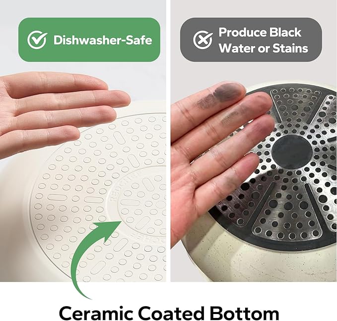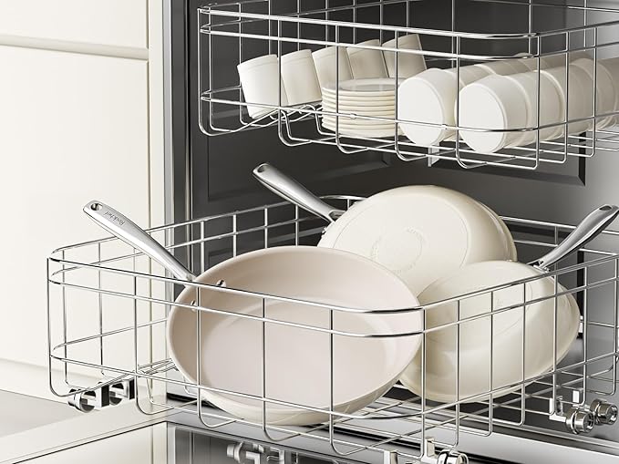 - COOL & STURDY HANDLE: Crafted from lightweight, precision-pressed stainless steel, this ergonomically designed handle ensures a comfortable grip. Double-riveted for exceptional strength and maneuverability, ceramic saute pan empowers you to seamlessly transition from stovetop to oven, allowing you to achieve that flawless sear, brown toppings, or even bake