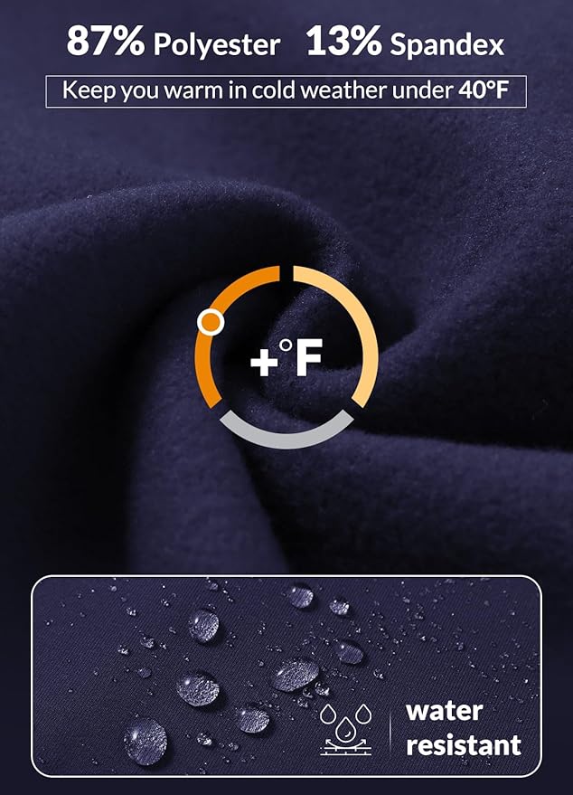 • Fabric type : KEEP WARM & WATER RESISTANT: 87% Polyester, 13% Spandex