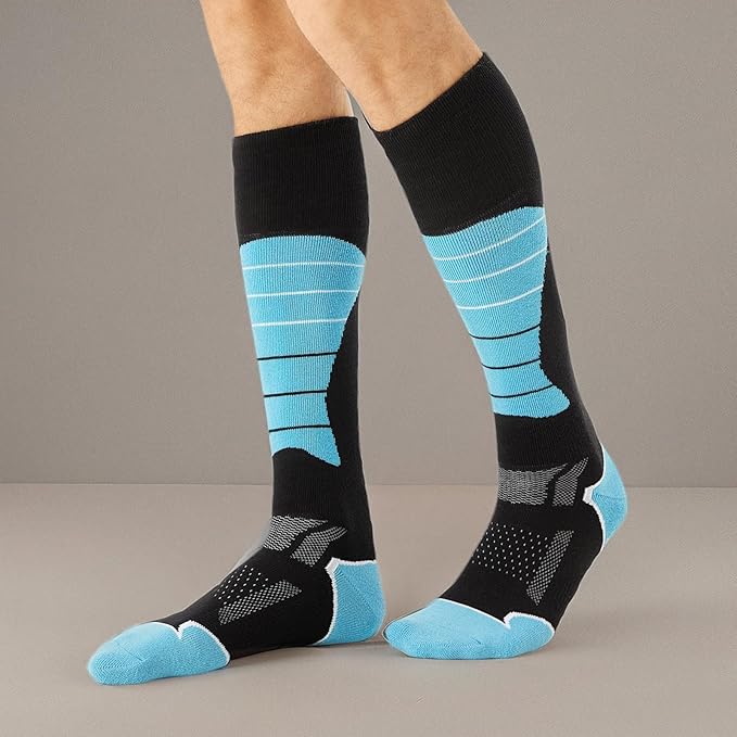 - COMFORTABLE FIT: These ski socks have a lightweight thickness, ensuring a perfect fit with your ski boots. With cushioning in the shin, ankle, and foot areas, they keep your feet warm, dry, and reduce foot pain during sports or daily activities