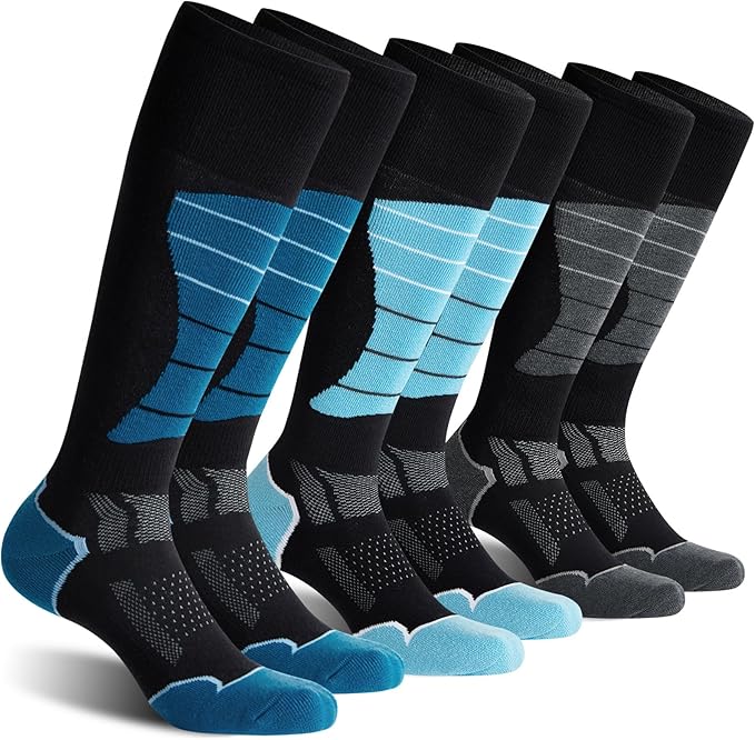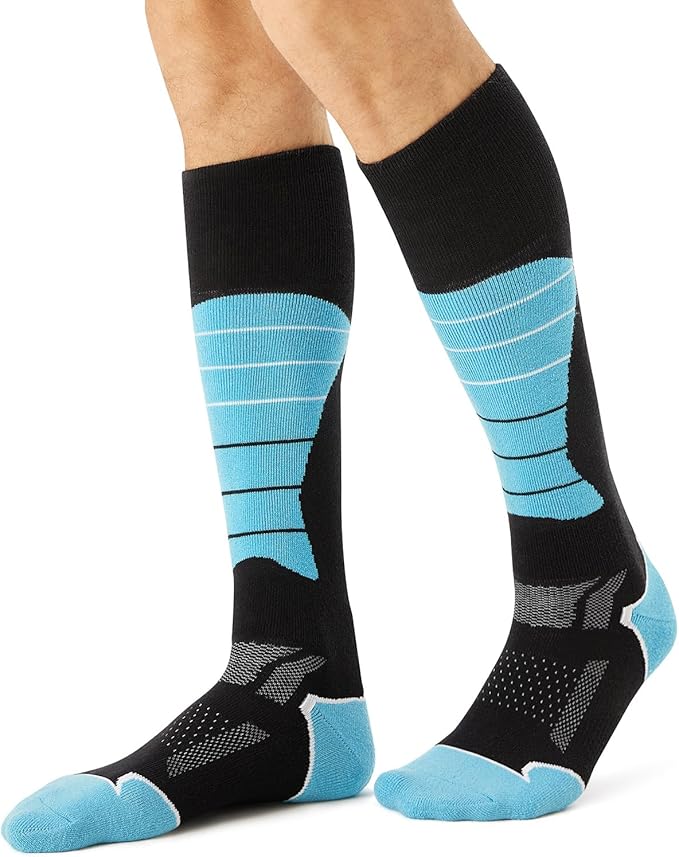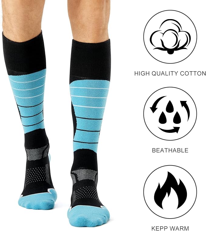 - COMFORTABLE FIT: These ski socks have a lightweight thickness, ensuring a perfect fit with your ski boots. With cushioning in the shin, ankle, and foot areas, they keep your feet warm, dry, and reduce foot pain during sports or daily activities
