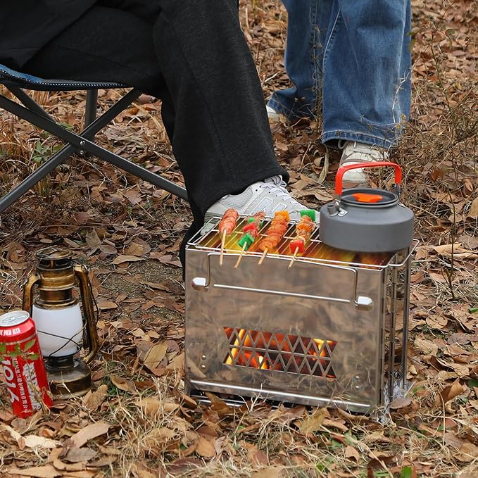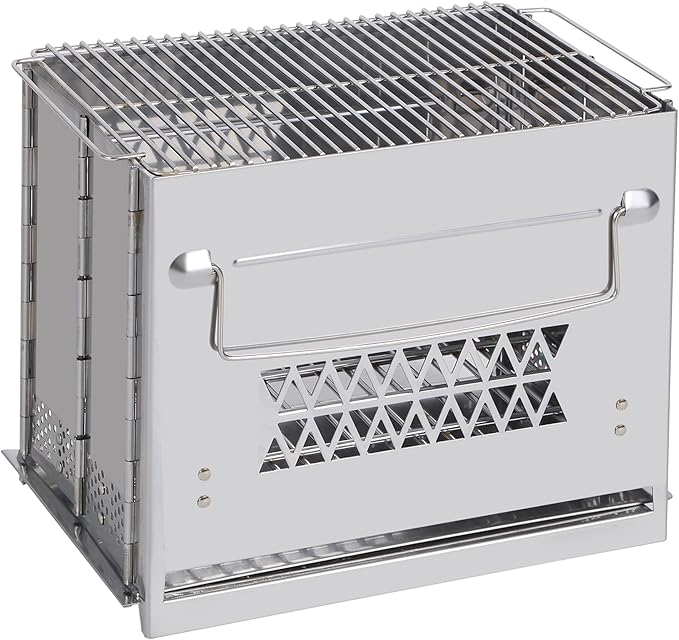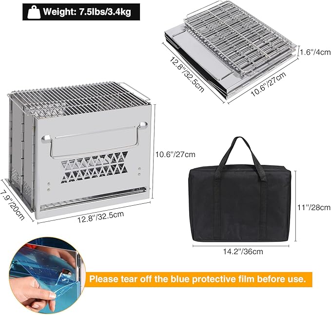 - Foldable & Portable: The collapsible backpacking burner consists of a furnace body, a BBQ net, a fuel plate and an ash pan. Equipped with storage bag. Compact in size, the integrated furnace body is foldable, and all components can be easily stored together after disassembly, making it easy to carry.