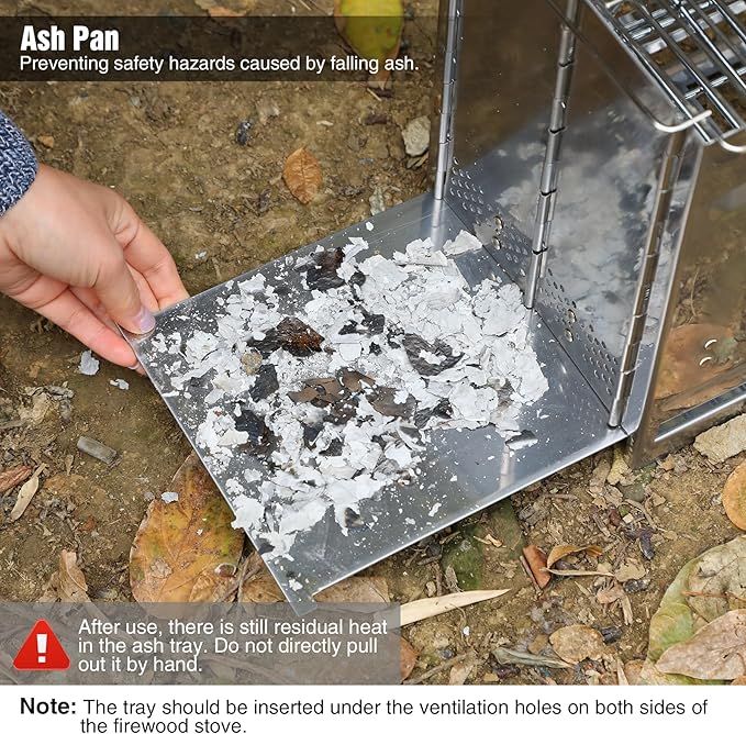 - Efficient Design: There are ventilation holes at the bottom of both side of the furnace, effectively increase the oxygen inside the stove, making the fuel burn more fully. At the same time, there is also an ash tray at the bottom, which can help you to quickly clean up the burnt ash.