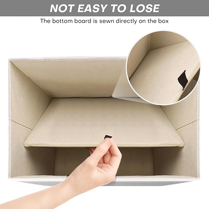 - 【Premium Quality】 -These fabric storage bins with lids are made of durable and breathable linen fabric with the high quality cardboard on the sides and bottom. The fabric is eco-friendly and durable, with no odor. The inner 2.2mm thick cardboard maintains fabric storage box shape and structural integrity. Both handles are sewn through cardboard to make this decorative storage boxes rigid enough to hold a heavy load.