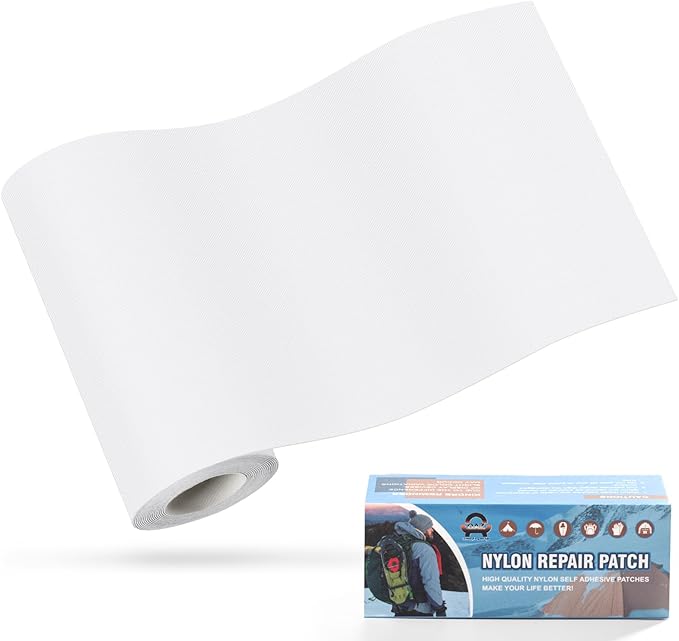 OAZ 3.9 x 63 inch Nylon Repair Patches Nylon Fabric Patch Self-Adhesive Nylon Repair Tape Waterproof Lightweight Outdoor Gear Repair Patch Kit for Down Jacket Clothing Tent Bag (White)