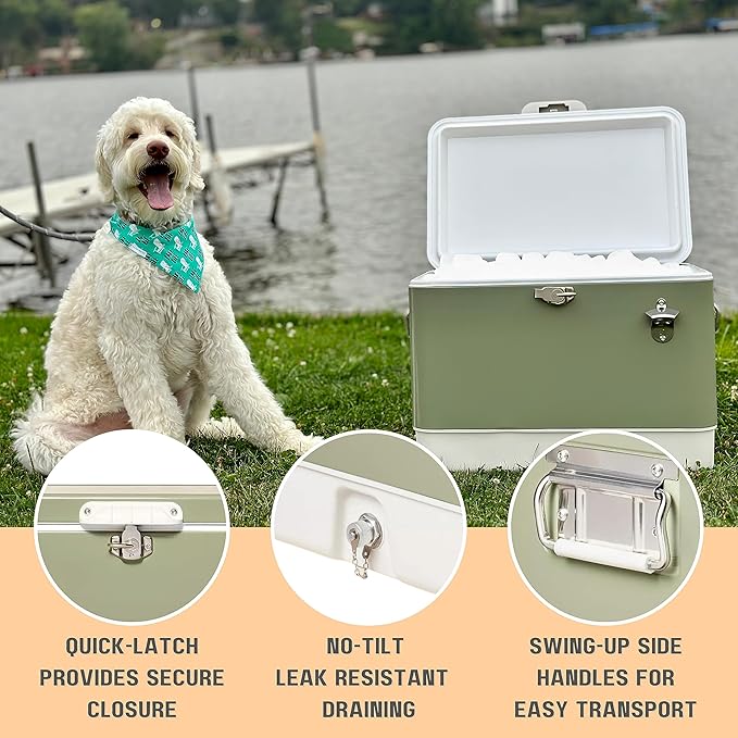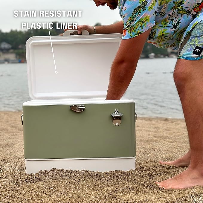 - TIMELESS STYLE: Featuring a two-tone green and cream design, this cooler adds a touch of retro charm to your outings. Elevate your outdoor experience with a cooler that not only performs but also looks good doing it
