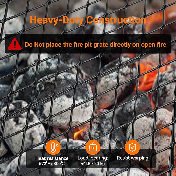 - Durable Heavy-Duty Construction:This fire pit grate is made of heavy-duty black steel with a protective surface coating, which is durable, rust-proof and high-temperature heat resistant.