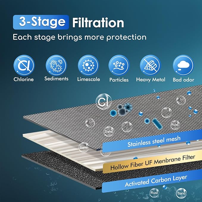 - ✔️High Efficiency Advanced 3-Stages Filtering System: 1. High-performance medical Grade Hollow Fiber UF Membrane, 2. High Quality Activated Carbon Fiber,3. Stainless steel mesh. It's portable which makes it the perfect solution of water shortage in an emergency, and can instantly turn a water source nearby into healthy drinking water. Must for traveling, backpacking, camping and emergency kits!