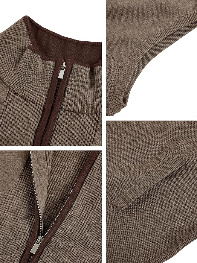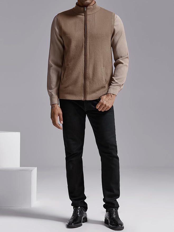 Ryannology Mens Sweater Vest Zip up Casual Sleeveless Cardigan Knitted Stand Collar Regular Fit Jacket with Pockets