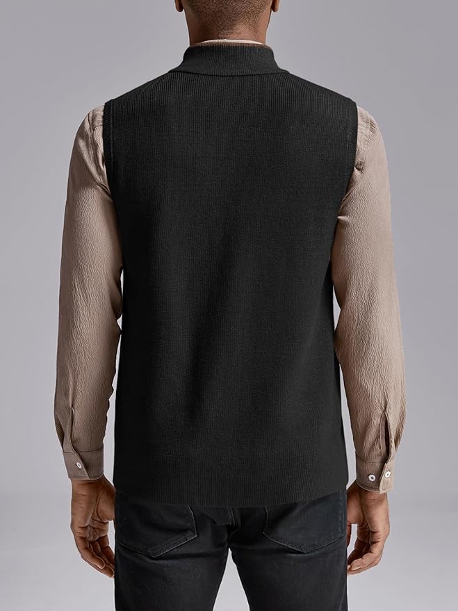 Ryannology Mens Sweater Vest Zip up Casual Sleeveless Cardigan Knitted Stand Collar Regular Fit Jacket with Pockets