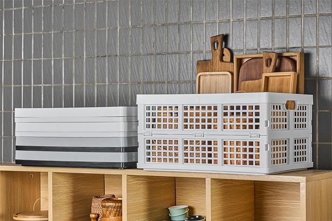 3-Pack Plastic Collapsible Storage Crates-30L,Foldable Plastic Crates for Storage (White)