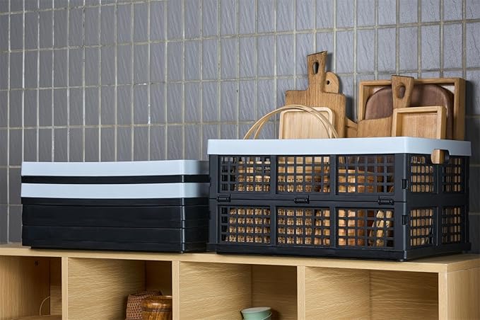 3-Pack Plastic Collapsible Storage Crates-30L,Foldable Plastic Crates for Storage (Black+Gray)